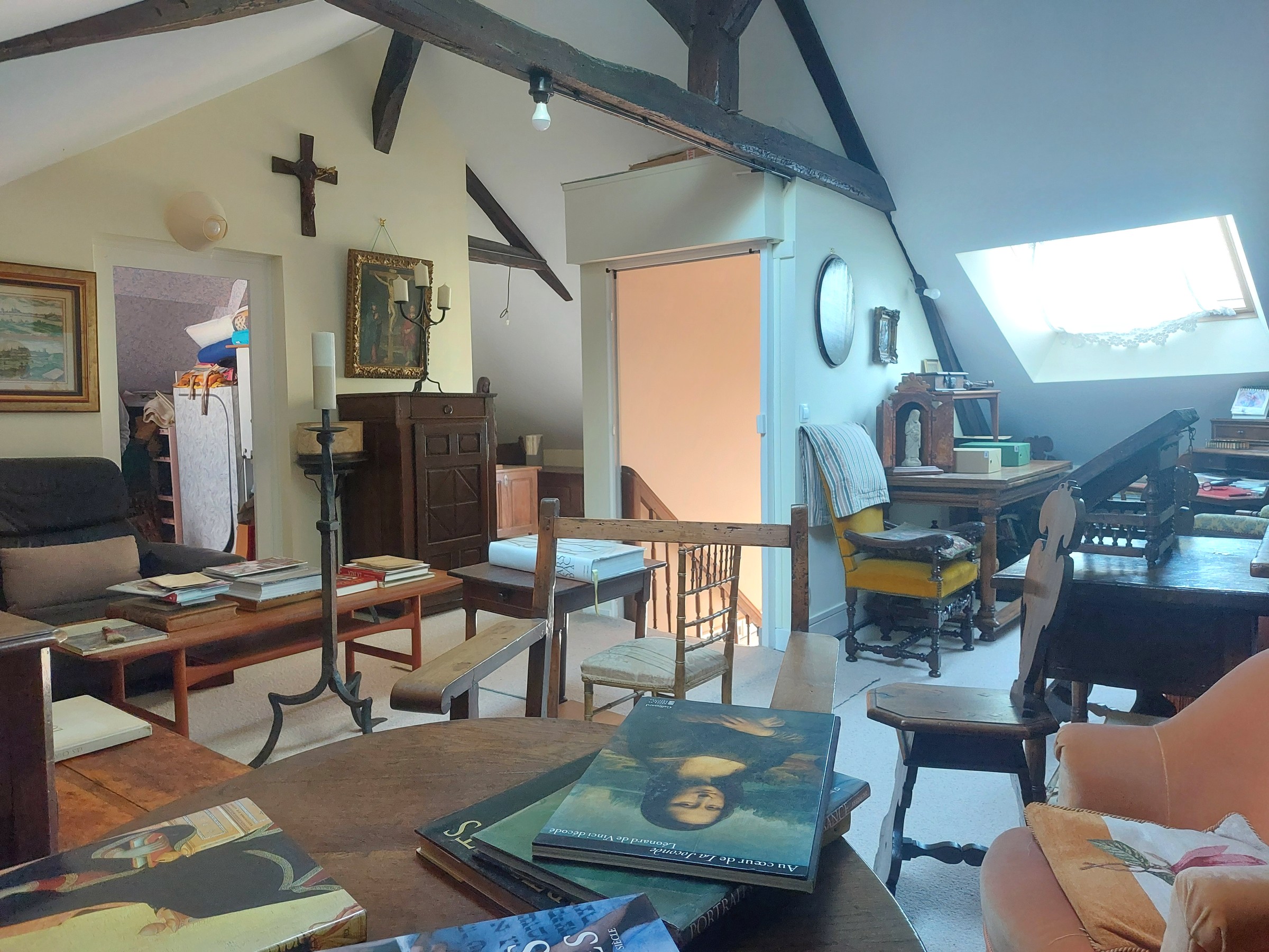 – à l’étage : une vaste pièce palière pouvant accueillir une chambre et une salle d’eau, une chambre, un grenier,