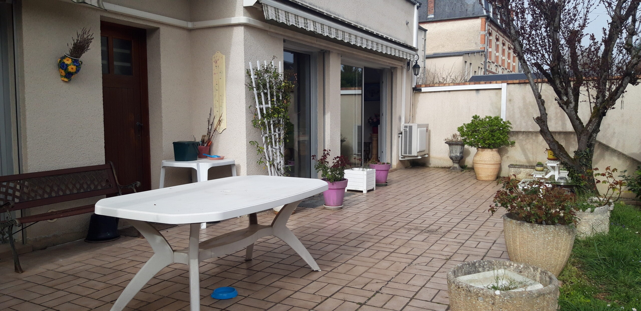 Séjour et cuisine ouverts sur vaste terrasse exposée « sud » et jardin.